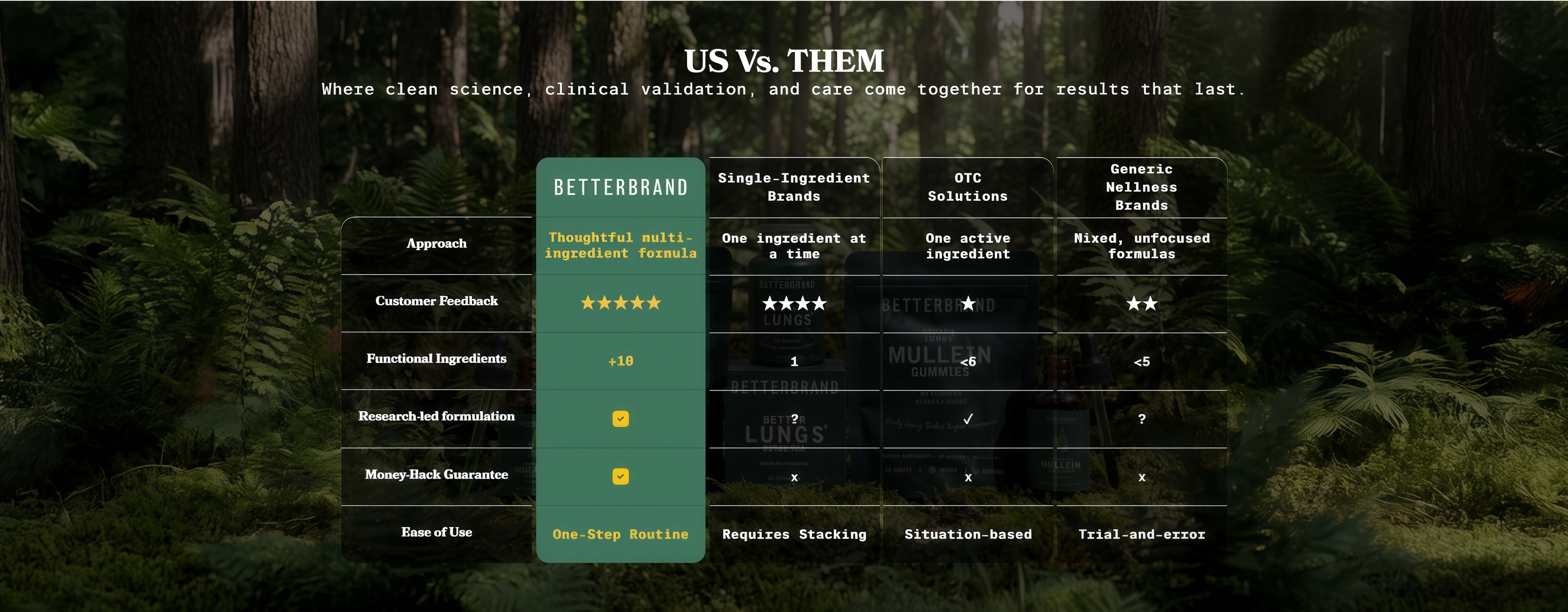 At Betterbrand, we believe natural is better.Founded by Dr. Chris, a former Army Combat Medic and Doctor of Pharmacy, we’re redefining wellness through honesty, precision, and proven natural science.While Big Pharma builds dependency, we build trust, creating natural solutions your body already understands, backed by real science and transparency.